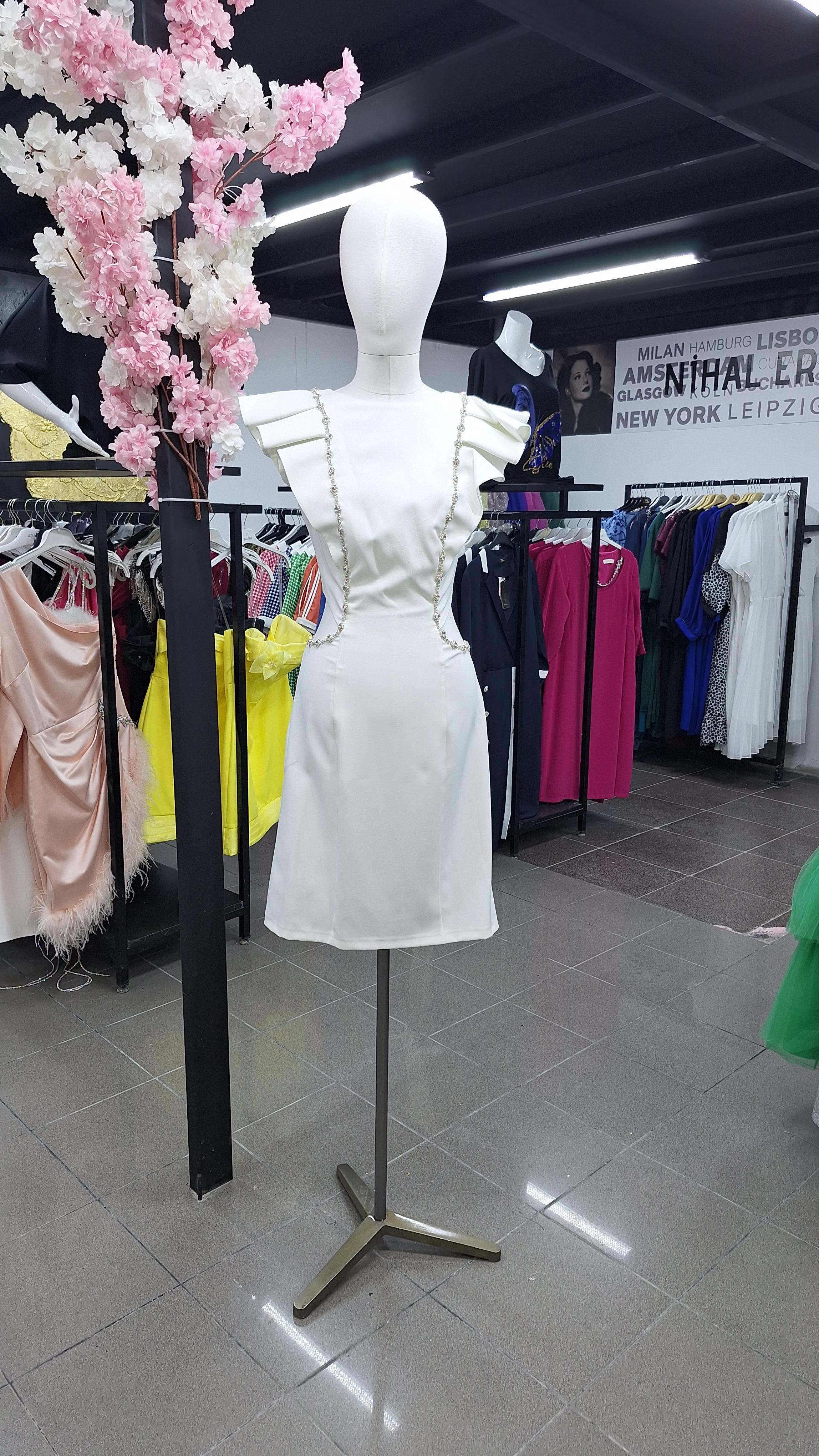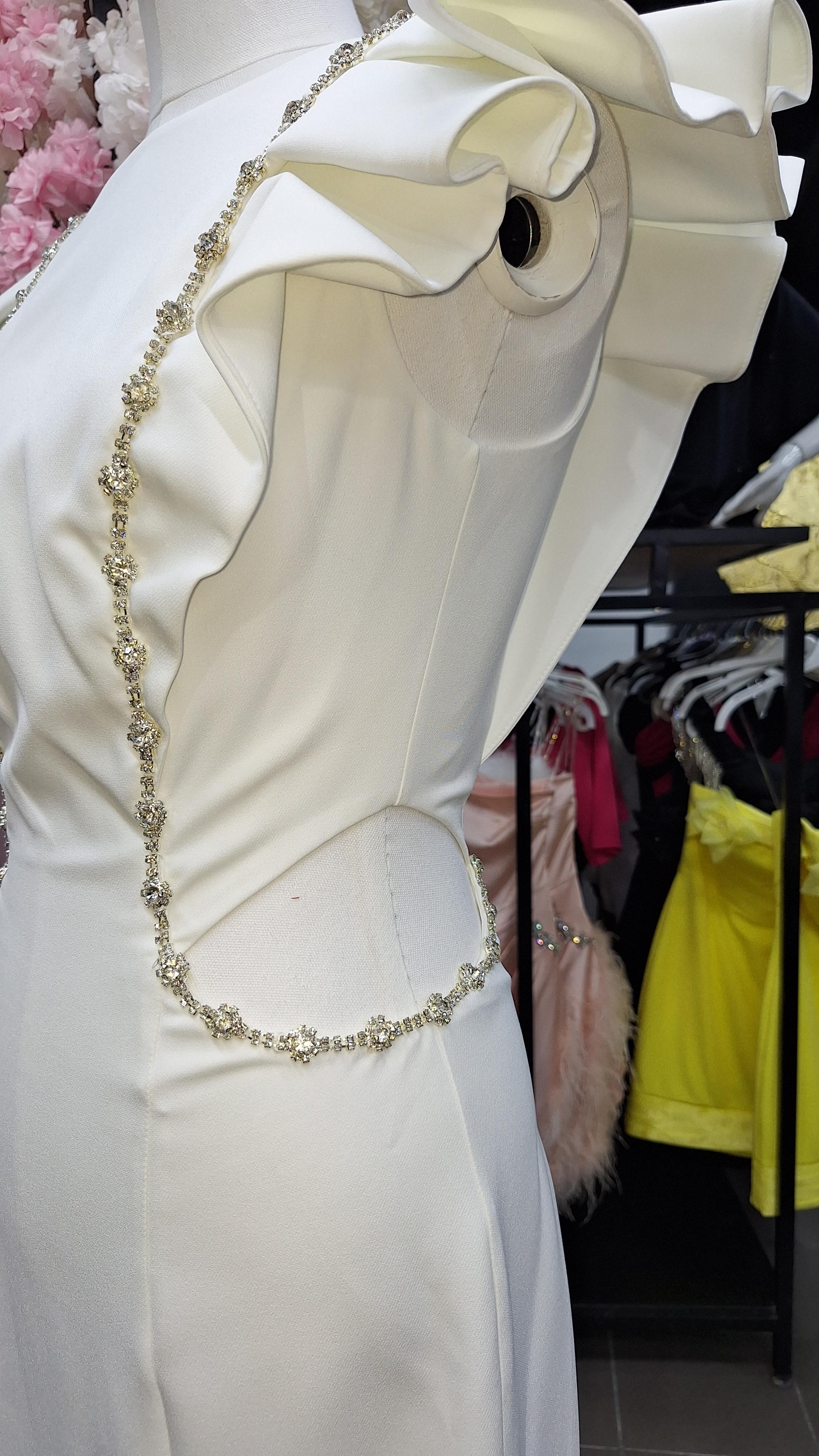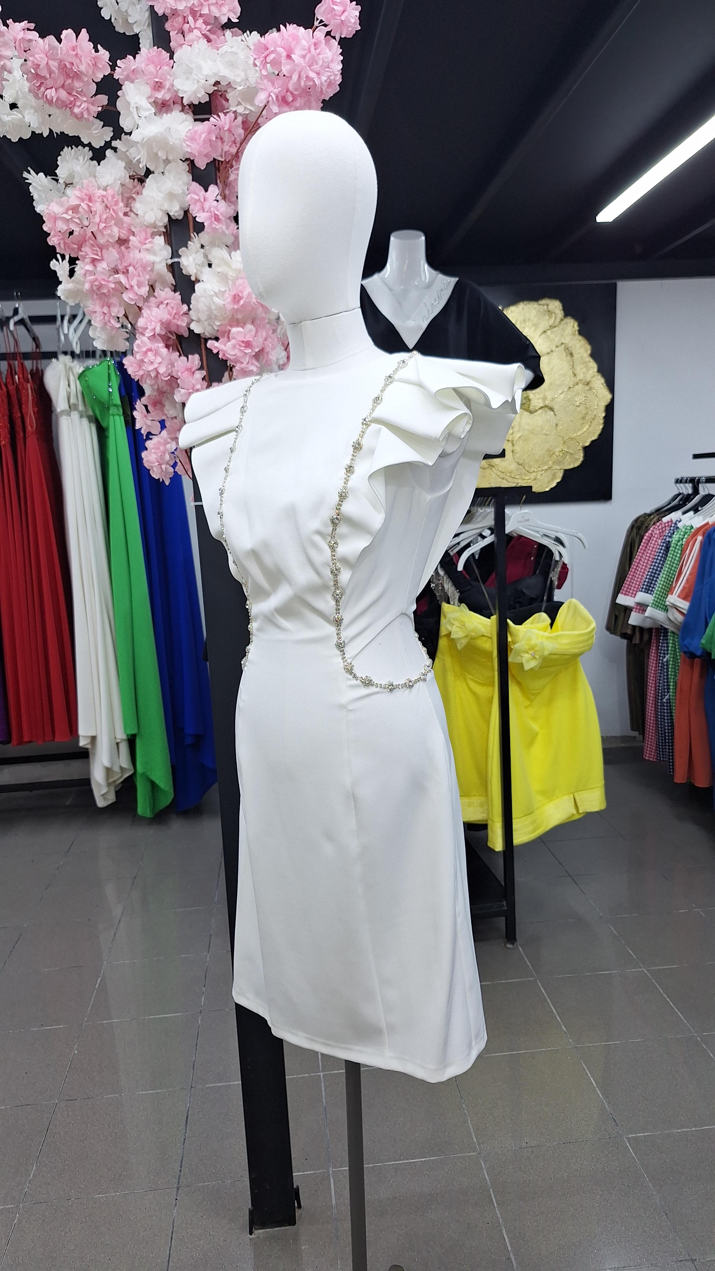 Zincir Detay Beyaz Elbise